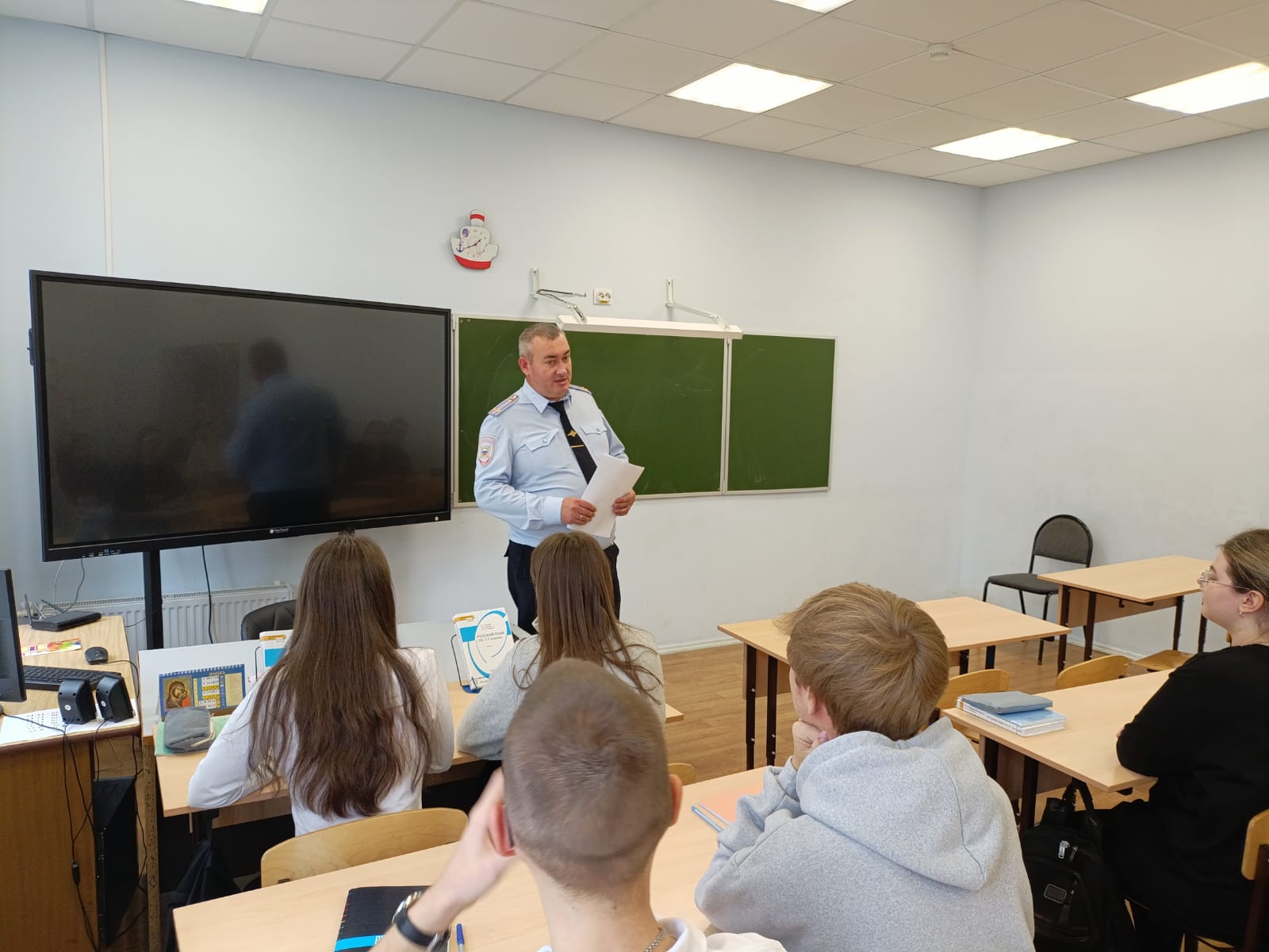В рамках профориентационной работы заместитель командира отдельного батальона патрульно-постовой службы полиции УМВД России по Сергиево-Посадскому городскому округу подполковник полиции Александр Захаров провел встречу с учащимися местной школы. Цель мероприятия – знакомство старшеклассников с деятельностью подразделений патрульно-постовой службы полиции и формирование интереса к службе в органах внутренних дел.